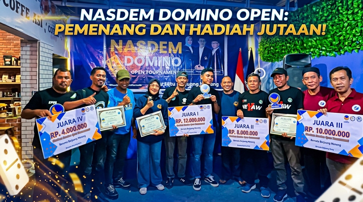 TERNATE, SerambiTimur- Sorak tepuk tangan dan riuh kebanggaan pecah di Kota Ternate pada Senin malam, 27 April 2026. Setelah melewati rangkaian pertandingan yang penuh strategi dan sportivitas, turnamen domino yang diselenggarakan DPW Partai NasDem Maluku Utara resmi menuntaskan seluruh pertandingan dan melahirkan para juara dari dua kategori utama.