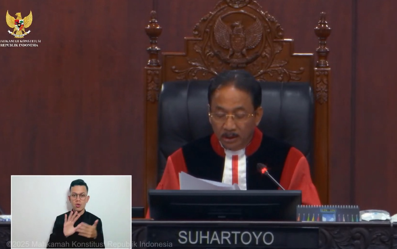 Keputusan tersebut disampaikan Ketua MK, Suhartoyo, dalam Sidang Pengucapan Putusan Nomor 258/PHPU.GUB-XXIII/2025, yang digelar pada Rabu (5/2/2025) di Gedung I MK, Jakarta. Dalam putusannya, Mahkamah menyatakan bahwa permohonan pemohon tidak dapat diterima.