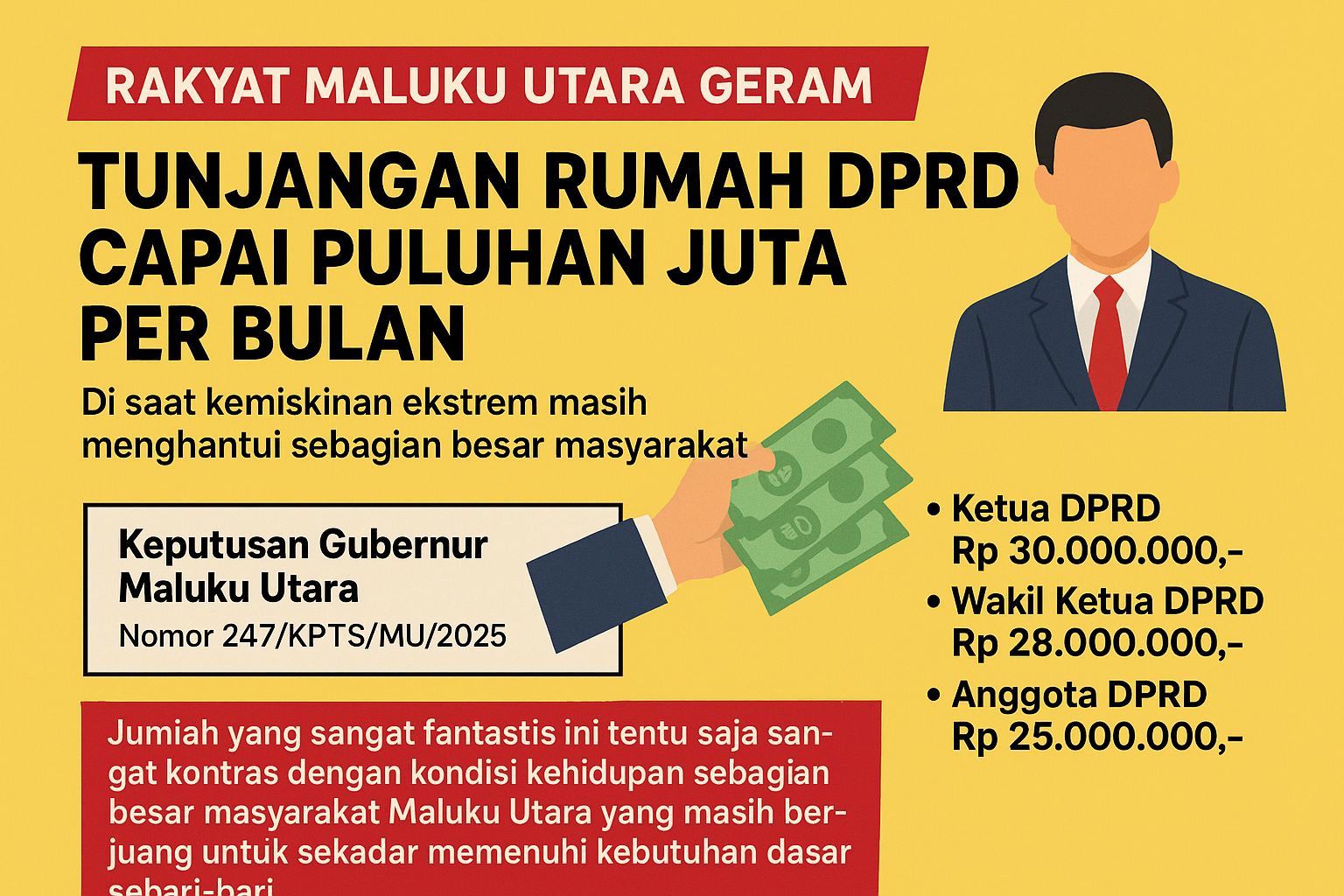 Tunjangan Rumah DPRD Maluku Utara Capai Rp30 Juta per Bulan, Rakyat Geram: “Ironi di Tengah Kemiskinan!”